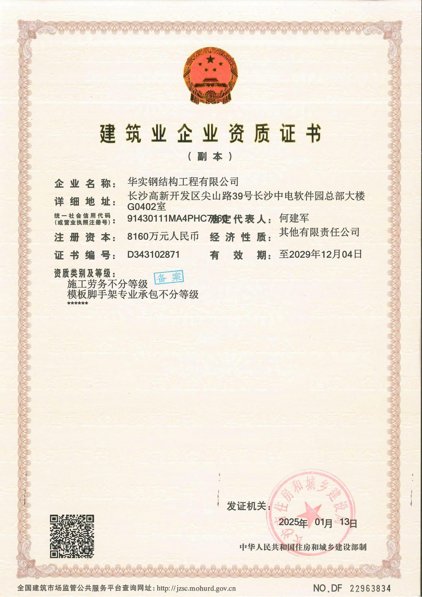華實(shí)鋼結(jié)構(gòu)工程有限公司是華實(shí)建設(shè)集團(tuán)有限公司的專業(yè)鋼結(jié)構(gòu)子公司,鋼結(jié)構(gòu)工程廠家,公司擁有鋼結(jié)構(gòu)工程專業(yè)承包壹級(jí)資質(zhì)、建筑工程施工總承包貳級(jí)資質(zhì)等建筑資質(zhì),注冊(cè)資金8160萬(wàn),公司生產(chǎn)制造基地湖南泰成鋼結(jié)構(gòu)有限公司,坐落于寧鄉(xiāng)市大成橋工業(yè)園,自成立以來(lái)一直致力于鋼結(jié)構(gòu)產(chǎn)品研發(fā)、設(shè)計(jì)、制造、施工、銷售業(yè)務(wù),具備按期保質(zhì)交付客戶的全流程保障的專業(yè)實(shí)力,主要業(yè)績(jī)遍布國(guó)內(nèi)及海外市場(chǎng)。